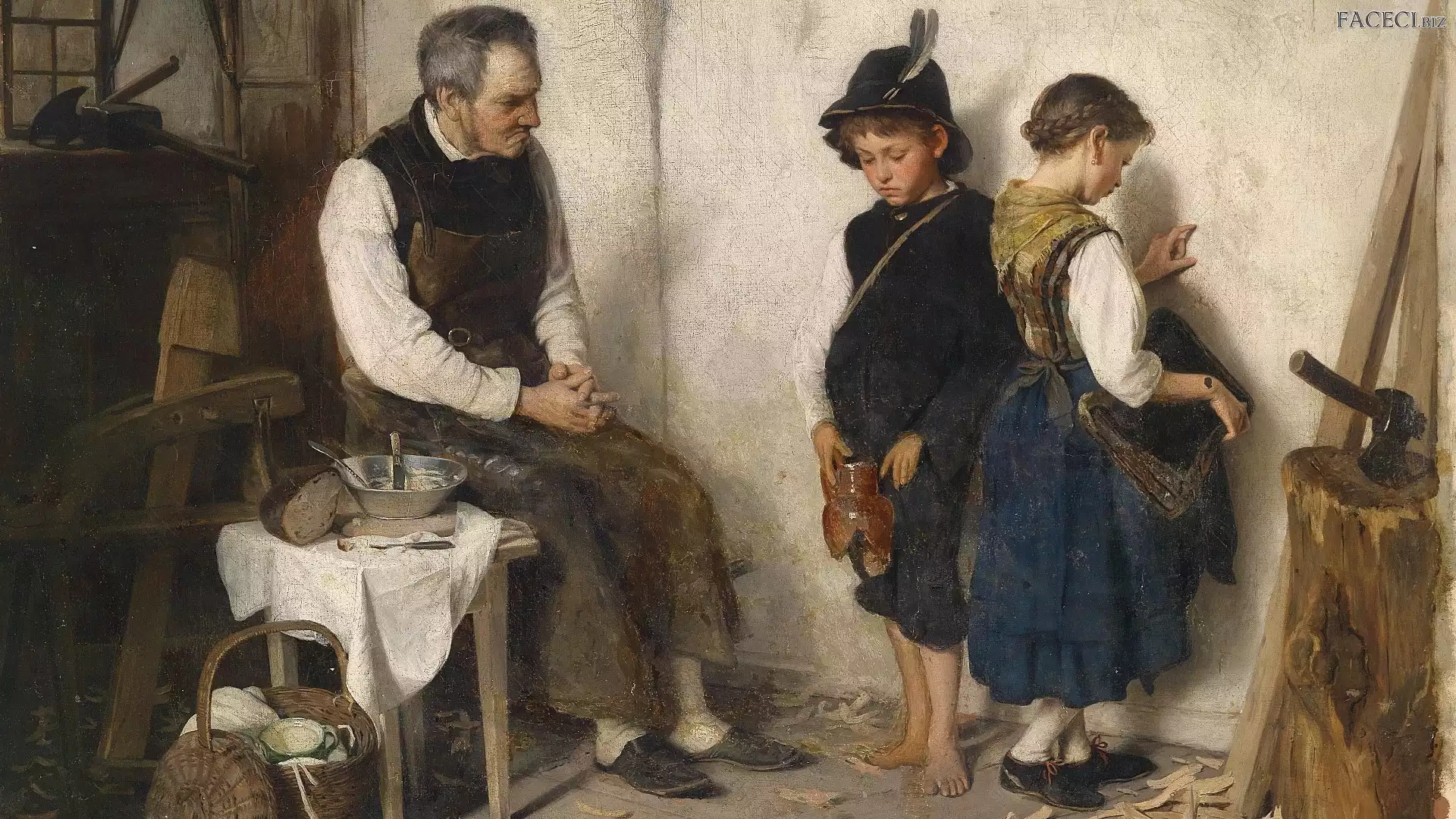 Gustav Igler, Malarstwo, Izba, Dzieci, Obraz, Mężczyzna